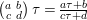 $\left(\!\begin{smallmatrix}a & b\\ c & d\end{smallmatrix}\!\right)\unicode[STIX]{x1D70F}=\frac{a\unicode[STIX]{x1D70F}+b}{c\unicode[STIX]{x1D70F}+d}$