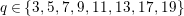 $q\in \{3,5,7,9,11,13,17,19\}$