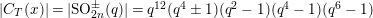 $|C_{T}(x)|=|\text{SO}_{2n}^{\pm }(q)|=q^{12}(q^{4}\pm 1)(q^{2}-1)(q^{4}-1)(q^{6}-1)$