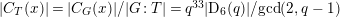 $|C_{T}(x)|=q^{16}(q^{2}-1)(q^{4}-1)(q^{6}-1)/\text{gcd}(2,q-1)$
