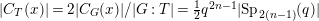 $|C_{T}(x)|=q^{4}(q^{2}-1)/\text{gcd}(2,q-1)$