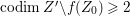 $\text{codim}\,F^{\prime }\setminus f(F)\geqslant 2$. Hence,