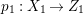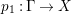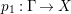 $p_{1}:{\rm\Gamma}\rightarrow X$,