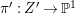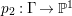 $p_{2}:{\rm\Gamma}\rightarrow \mathbb{P}^{1}$ for the same reason as before. Let