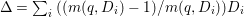 ${\rm\Delta}=\sum _{i}((m(q,D_{i})-1)/m(q,D_{i}))D_{i}$, where the
