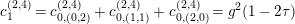 $c_{2}^{(3,(4,4))}=g^{2}(1/2-\unicode[STIX]{x1D70F})^{2}$