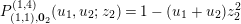$P_{(2,0),\mathbf{0}_{2}}^{(1,4)}(u_{1},u_{2};z_{2})=1-2u_{1}z_{2}^{2}$