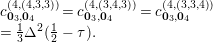 $c_{\mathbf{0}_{3},\mathbf{0}_{4}}^{(4,(4,3,3))}=c_{\mathbf{0}_{3},\mathbf{0}_{4}}^{(4,(3,4,3))}=c_{\mathbf{0}_{3},\mathbf{0}_{4}}^{(4,(3,3,4))}=\frac{1}{3}\unicode[STIX]{x1D6E5}^{2}(\frac{1}{2}-\unicode[STIX]{x1D70F}).$