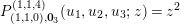 $P_{(1,1,0),\mathbf{0}_{3}}^{(1,1,4)}(u_{1},u_{2},u_{3};z)=z^{2}$