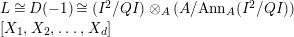 $$\begin{eqnarray}\displaystyle & & \displaystyle R^{\prime }=\text{R}^{\prime }(I):=A[It,t^{-1}]\subseteq A[t,t^{-1}]\quad \operatorname{and}\quad \nonumber\\ \displaystyle & & \displaystyle G=\text{G}(I):=R^{\prime }/t^{-1}R^{\prime }\cong \bigoplus _{n\geqslant 0}I^{n}/I^{n+1}.\nonumber\end{eqnarray}$$