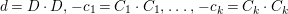 $d=D\cdot D,-c_{1}=C_{1}\cdot C_{1},\ldots ,-c_{k}=C_{k}\cdot C_{k}$