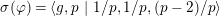 $\unicode[STIX]{x1D70E}(\unicode[STIX]{x1D711})=\langle g,p~|~1/p,1/p,(p-2)/p\rangle$