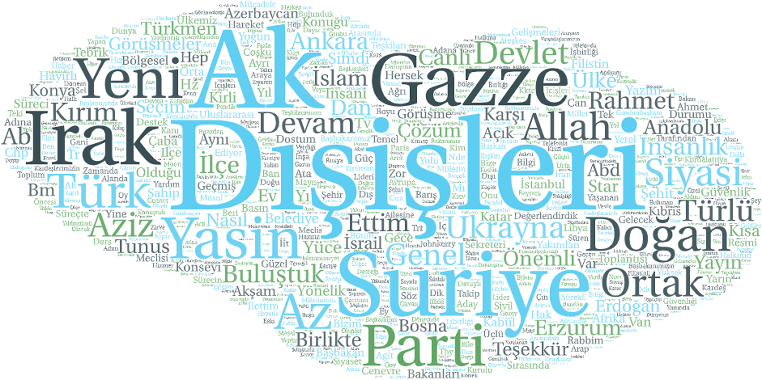 Figure 1. Overall word cloud of Erdoğan’s tweets between 2012 and 2015.