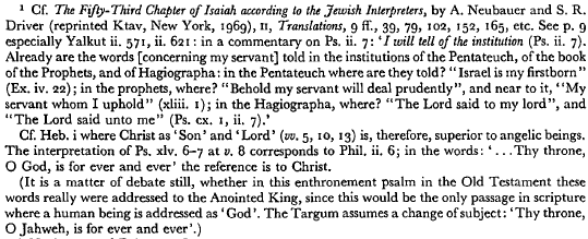 page 2 note 1 A typical Qumran-type pesher is the Septuagint's interpretation of the Hebrew exclamation Ahah! in Jeremiah, rendered by ό ών when it prefaces the divine name (e.g. xxxix/xxxii. 17). ό ών has established itself as a divine name in its own right, on the basis of the Hebrew interpretation of Exod. iii. 14 (‘I Am that I Am’). Cf. Wisdom xiii. 1; Rev. i. 4; Apostolic Constitutions 7. 33. 2.