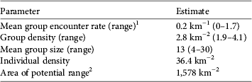 1 Inferred from 13 groups encountered over a total forested area of 41.9 km2