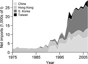 Fig. 4 Net imports of shark products in main Asian markets (based on data from FAO, 2011).