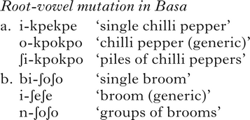 According to Blench (Reference Blench and Watters2018: 98), the motivation for the root-vowel mutation is ‘more difficult to explain’. It would be interesting to explore whether the root-vowel mutation in Basa is the result of a morphological process such as evaluative formation in Fungwa. To determine whether evaluative formation is a family-wide phenomenon, future research on these languages should document evaluative formation.