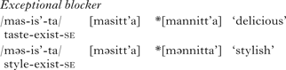 In addition to the conditions mentioned above on the application of n-insertion, it has been argued in the literature (Huh Reference Huh1984: 267, Ki Reference Ki1990: 130–131, Ko Reference Ko1992: 32, Han Reference Han and Clancy1993: 124–125, Kim et al. Reference Kim, Park, Ahn and Lee2002: 41, 44, Hong Reference Hong2006: 400) that n-insertion occurs only when M2 is a stem or root which can be an independent word. There are lexical exceptions (see e.g. Ko Reference Ko1992: 32, Kim et al. Reference Kim, Park, Ahn and Lee2002: 46–53, Bae Reference Bae2003: 241–242). Not all /i j/-initial M2 stems trigger n-insertion, as shown in (5), where se=sentence ender (from Ko Reference Ko1992: 32).