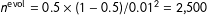 $n^{\text{evol}}=0.5\times (1-0.5)/0.01^{2}=2\text{,}500$