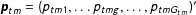 $\boldsymbol{p}_{tm}=(p_{tm1},\ldots p_{tmg},\ldots ,p_{tmG_{tm}})^{\prime }$