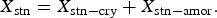 The terms in Eq. (7) refer only to the crystalline components of the mixture and, as such, the unknown(s) in Eq. (8) are determined through the diffraction experiment. The terms within the parentheses of Eq. (8) are the mass fractions of the unknown and standard, which are known from the weighing operation when the specimens were prepared. The right-hand side of Eq. (5) is the mass fraction of the standard determined from the Rietveld analysis, MFstn, and allows for the determination of ΣX u-cry. Equation (6) is then used to determine X u-amor. Solving Eq. (5) for ΣX u-cry and making this substitution into Eq. (6) we get: