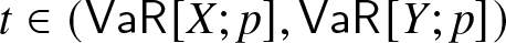 $t\in\left(\mathsf{VaR}[X;p],\mathsf{VaR}[Y;p]\right)$, for