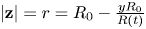 . This corresponds to $\vert \textbf {z} \vert = r=R_0-\frac {yR_0}{R(t)}$ with $y=O(1)$