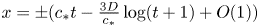 In § 3, we consider the behaviour on a domain whose endpoints move close to the critical speed $c_*$ . An analysis of one of our exact solutions suggests that a logarithmic-in-time adjustment may be the key to this. This is further motivated by the well-known result regarding Bramson's logarithmic correction in relation to the nonlinear FKPP equation on the real line with compactly supported initial conditions. In that case, it has been proven that the positions $x=\pm (c_*t - \frac {3D}{c_*}\log (t+1)+O(1))$