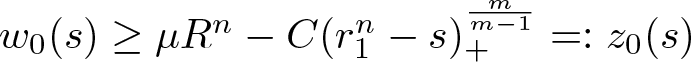 \mu R^n - \frac{C}{\lambda}(r_1^n + \theta t - s)^\frac{m}{m-1} &\text{if } s \lt \theta t + r_1^n, \\