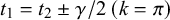 ${t}_1={t}_2\pm \gamma /2\left(k=\pi \right)$
