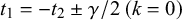 ${t}_1=-{t}_2\pm \gamma /2\left(k=0\right)$