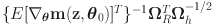\begin{document}$$\hat{\varvec{ \Omega }}_h=\frac{1}{n}\sum _{i=1}^n {{\textbf {h}}}({{\textbf {z}}}){{\textbf {h}}}({{\textbf {z}}})^T$$\end{document}