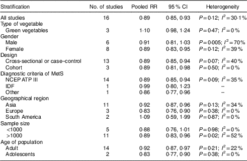 Table 2 Subgroup analyses of vegetable consumption and metabolic syndrome (MetS)