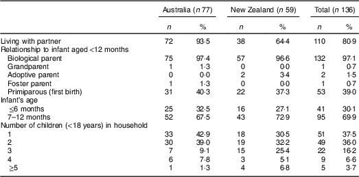 Table 2 Household composition of caregivers of formula-fed infants (n 136) participating in focus group discussions on infant formula labelling in metropolitan and regional areas of Australia and New Zealand, April–May 2016