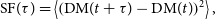 is a time lag and the angular brackets represent averaging over the time variable t. If the ISM electron density fluctuations follow a power law spectrum, then the structure function of the resulting DM time series will be a power law of the form