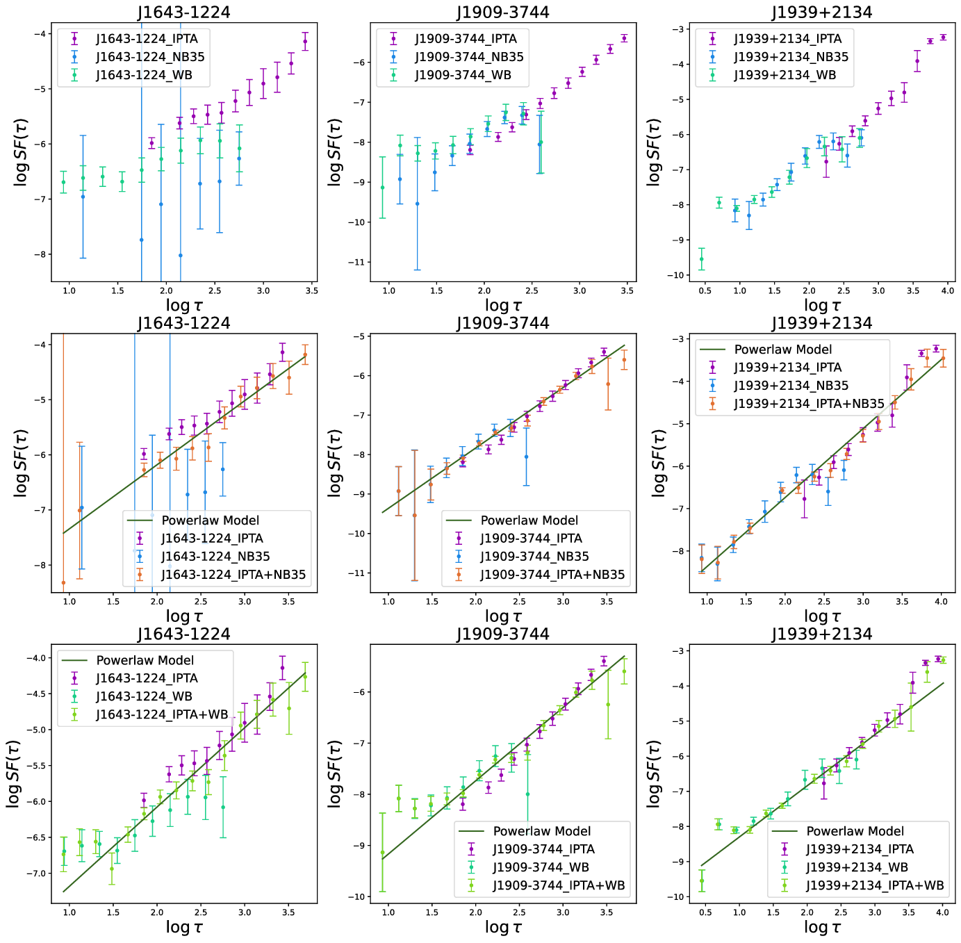 Figure 7. Structure function (SF) plots for three pulsars PSR J1643