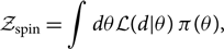 (15) \begin{align}\mathcal{Z}_{\rm spin}& = \int d\theta \mathcal{L}(d | \theta) \, \pi(\theta),\end{align}