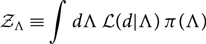(4) \begin{equation}\label{eq:evidence} \mathcal{Z} \equiv \int d\theta \mathcal{L}(d | \theta) \, \pi(\theta) . \end{equation}