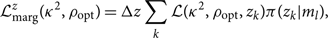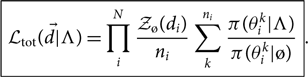 (9) \begin{equation} \mathcal{ L}(d | \theta_i) = \int \left(\prod_{k\neq i} d\theta_k\right) \pi(\theta_k) \, \mathcal{ L}(d | \theta). \end{equation}