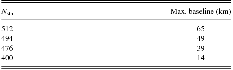 We trial four array configurations, which are all subsets of the Baseline Distribution. Table 2 describes the number of stations, and maximum baseline, for each. Figure 4 (right) shows the zenith snapshot uv-coverage of each at 150 MHz. We also considered a 4 km baseline array, which effectively corresponds to an array with EoR-science scales. Additionally, we consider a variation on the Baseline Design, whereby the inner clusters of six stations are unpacked for improved instantaneous imaging performance (Jones et al. Reference Jones, Mort, Dulwich, Wayth, Abeywickrema and Bolton2016).
