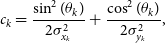 c_k&= \frac{\sin^{2}(\theta_k)}{2\sigma_{x_k}^{2}} + \frac{\cos^{2}(\theta_k)}{2\sigma_{y_k}^{2}},\end{align}