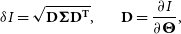 \delta I=\sqrt{\mathbf{D}\boldsymbol\Sigma\mathbf{D^{T}}},\;\;\;\;\;\;\;\;\mathbf{D}=\frac{\partial I}{\partial \boldsymbol\Theta},