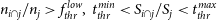 $n_{i\cap j}/n_{j}>f_{thr}^{low},\;t_{thr}^{min}<S_{i\cap j}/S_{j}<t_{thr}^{max}$,where