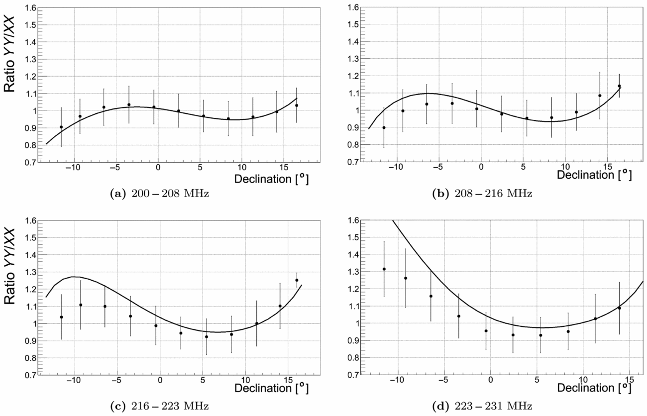 ) is shown in Figure 11. The GLEAM authors attributed the declination-dependent structure in the ratio YY/XX as a result of an inaccurate beam model. Our predictions, shown in Figure 11, support this statement.