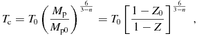 Second collapse. If the planet contracts to the central temperature T c ~ 2000 K, it collapses rapidly due to H2 dissociation (Bodenheimer Reference Bodenheimer1974) into the ‘second core’ (Larson Reference Larson1969), which has T c ≳ 20000 K and a radius of only R p ~ 1R⊙ ≈ 0.005 AU (see Section 6.1).