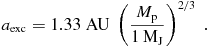 Exclusion zone. The smallest separation which a migrating pre-collapse gas fragment can reach is found by comparing equations (2) and (1) for T c = 2000 K: