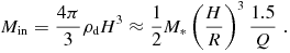 However, M in remains highly uncertain. In the standard accretion disc theory, the disc mid plane density is ρd = Σ/(2H). Using equation (4), the initial fragment mass can be estimated as