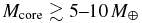 $M_{\rm core}\gtrsim 5\text{--}10\,M_\oplus$