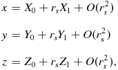 x&=&X_0+r_s X_1+O(r_s^2)\nonumber\\[3pt]