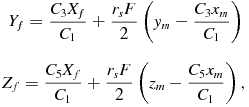 Y_{f} = \frac{C_3 X_f}{C_1}+\frac{r_s F}{2}\left(y_m-\frac{C_3 x_m}{C_1}\right) \nonumber\\[3pt]